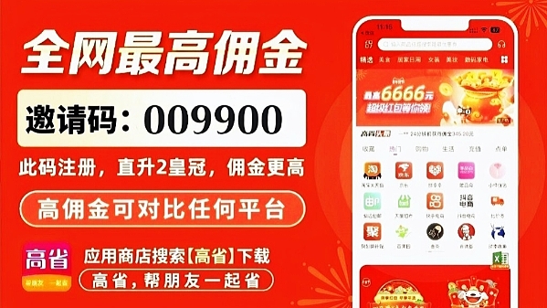 作为全网全品类综合优惠导购返佣平台,高省整合淘宝、京东、拼多多等主流电商平台及饿了么、美团等生活服务资源,提供海量隐藏优惠券与高额返利。用户通过分享商品链接或邀请好友注册,可获得双重收益!【高省】是一个自用省钱佣金高,分享推广赚钱多的平台。佣金更高,模式更好,终端用户不流失。0投资,稳定可靠,百度有几百万篇报道,期待你的加入。应用商店搜索【高省】下载,填写高省邀请码: 009900,注册成功后升级 2 皇冠会员,送万元引流推广大礼包,提供专业一对一辅导,全程免费,教你打造百万团队。